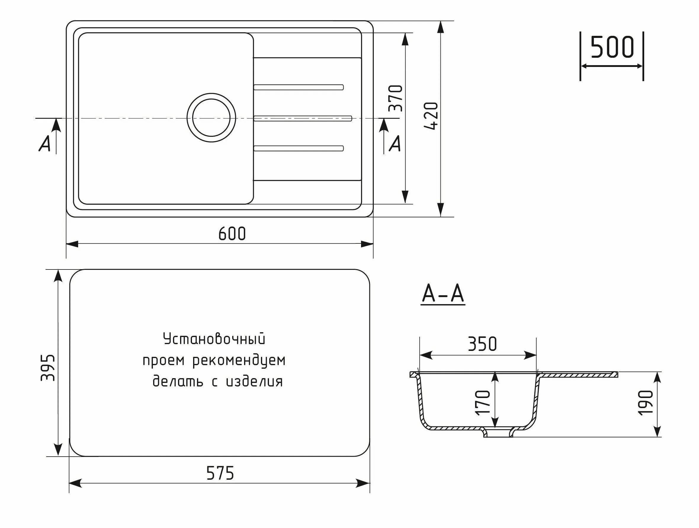 Отверстия под смеситель: без отверстий
