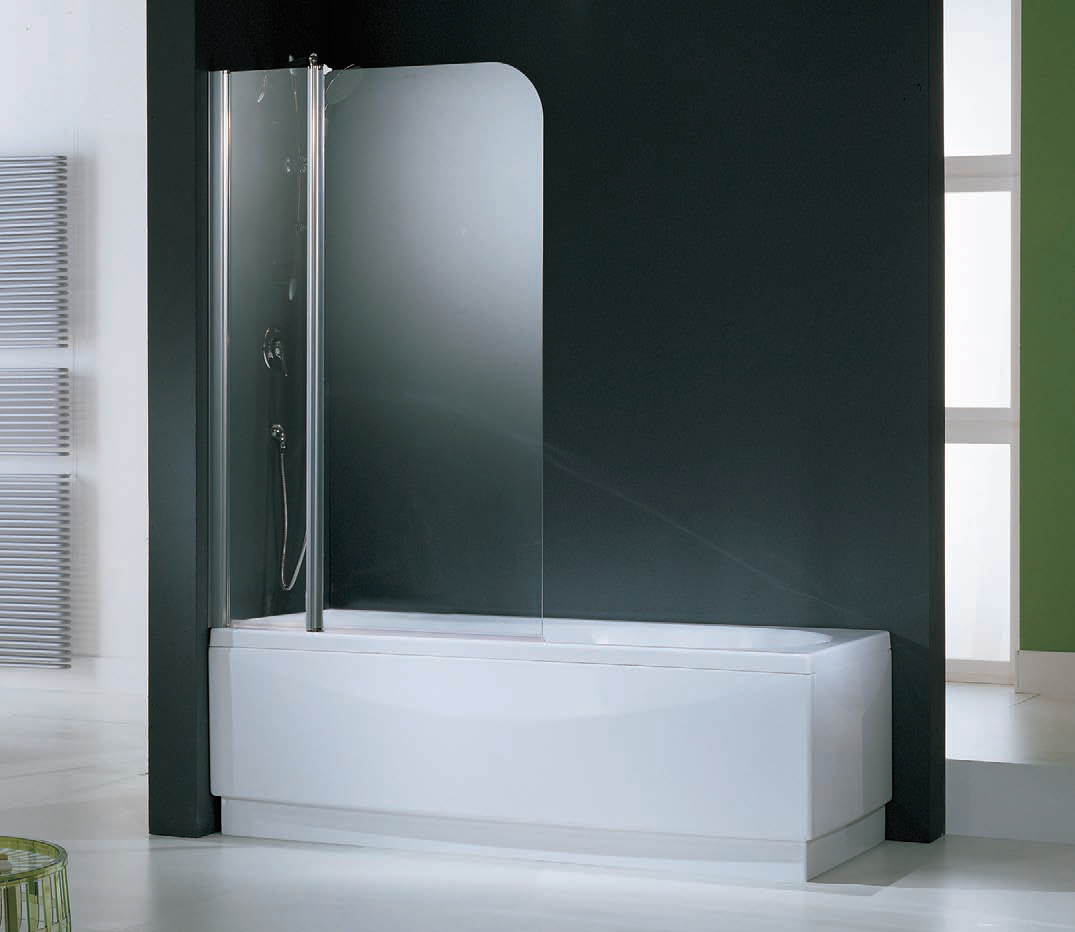 Распашная перегородка для ванны, которая крепится к одной стене, получается элегантной и несомненно сделает Вашу ванную солиднее и благороднее. При выборе такой шторки учитывайте, что будет расположено рядом, и не будет ли мешать другая сантехника. Распашная шторка будет менее герметичная чем предыдущая и готовьтесь к тому, что уплотнители это расходный материал, который рано или поздно нужно будет менять. Если всё правильно рассчитать и продумать, стеклянная шторка на ванну с распашной дверкой будет радовать Вас своей красотой и удобством.