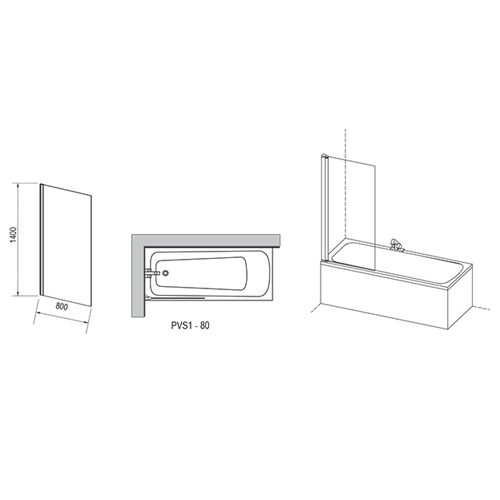 Шторка для ванны неподвижная, одноэлементная, поворачивающееся изделие (крепления слева или справа).