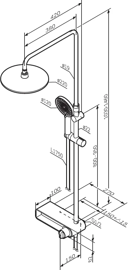 Вылет верхнего душа: 42 см