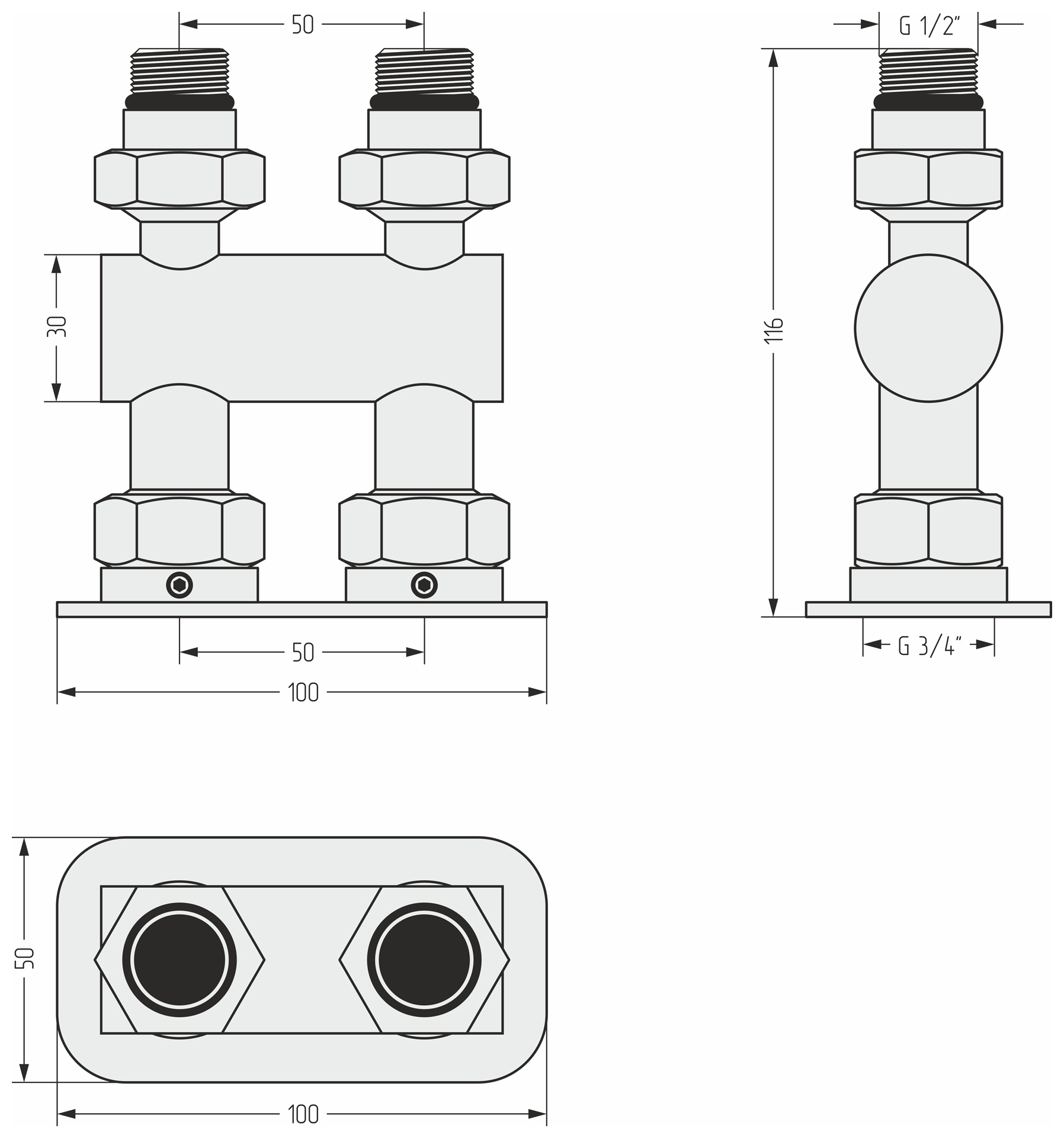 Сунержа Модуль 2х1/2" прямой EU50 15-1537-1234 Темный титан муар