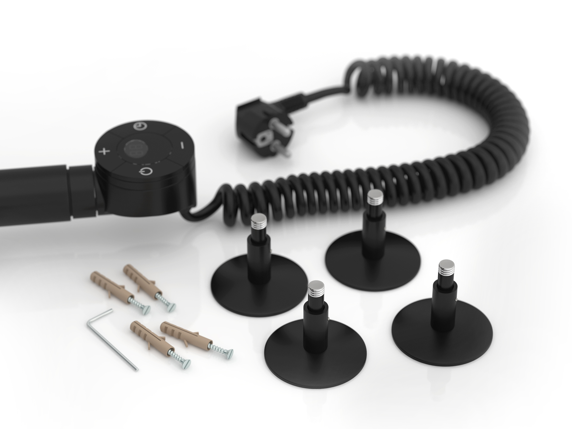 Комплектация: Блок управления с кабелем, Телескопические кронштейны, Шестигранный ключ, Дюбели и саморез