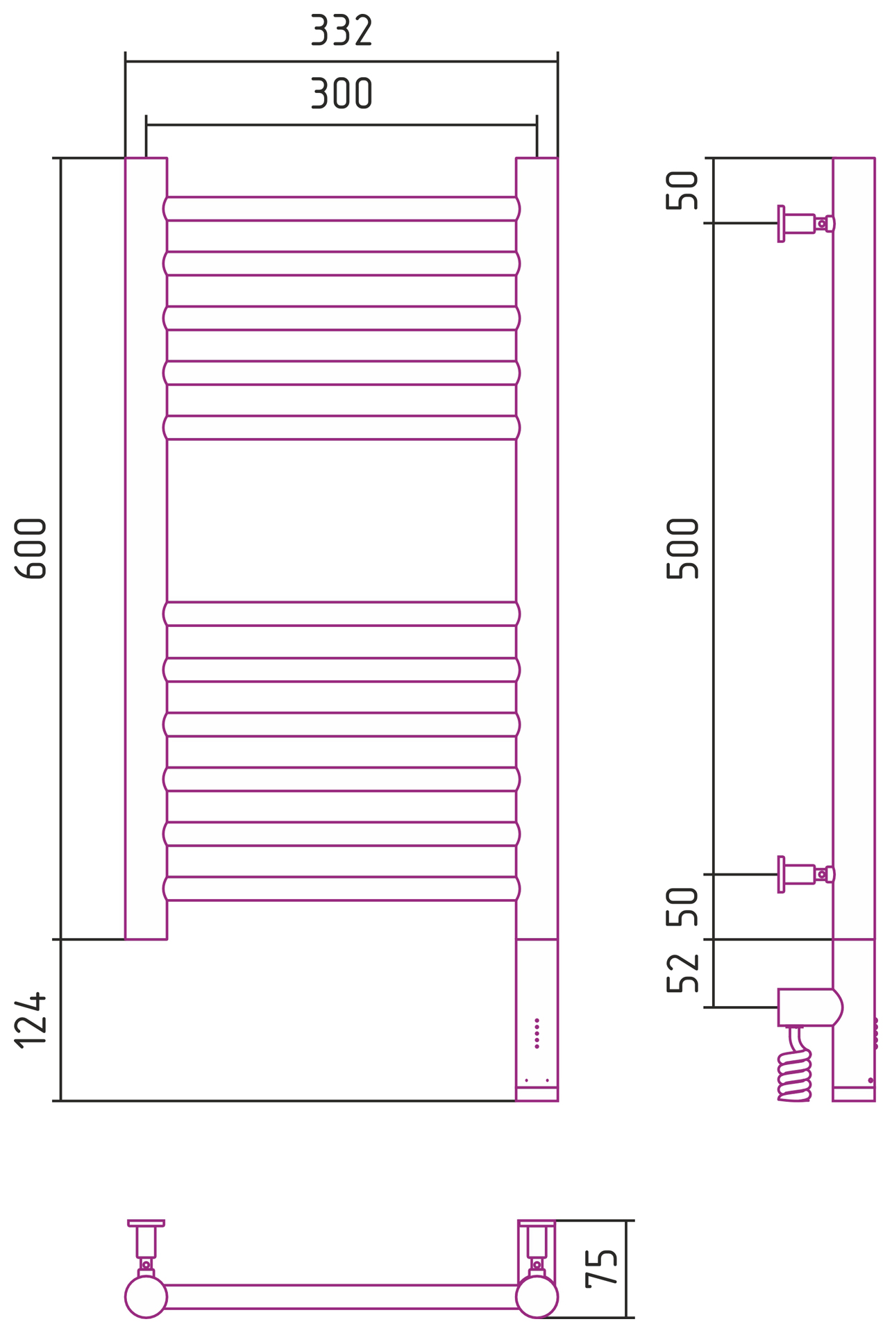 Сунержа Богема 3.0 прямая Электрический полотенцесушитель 600х300