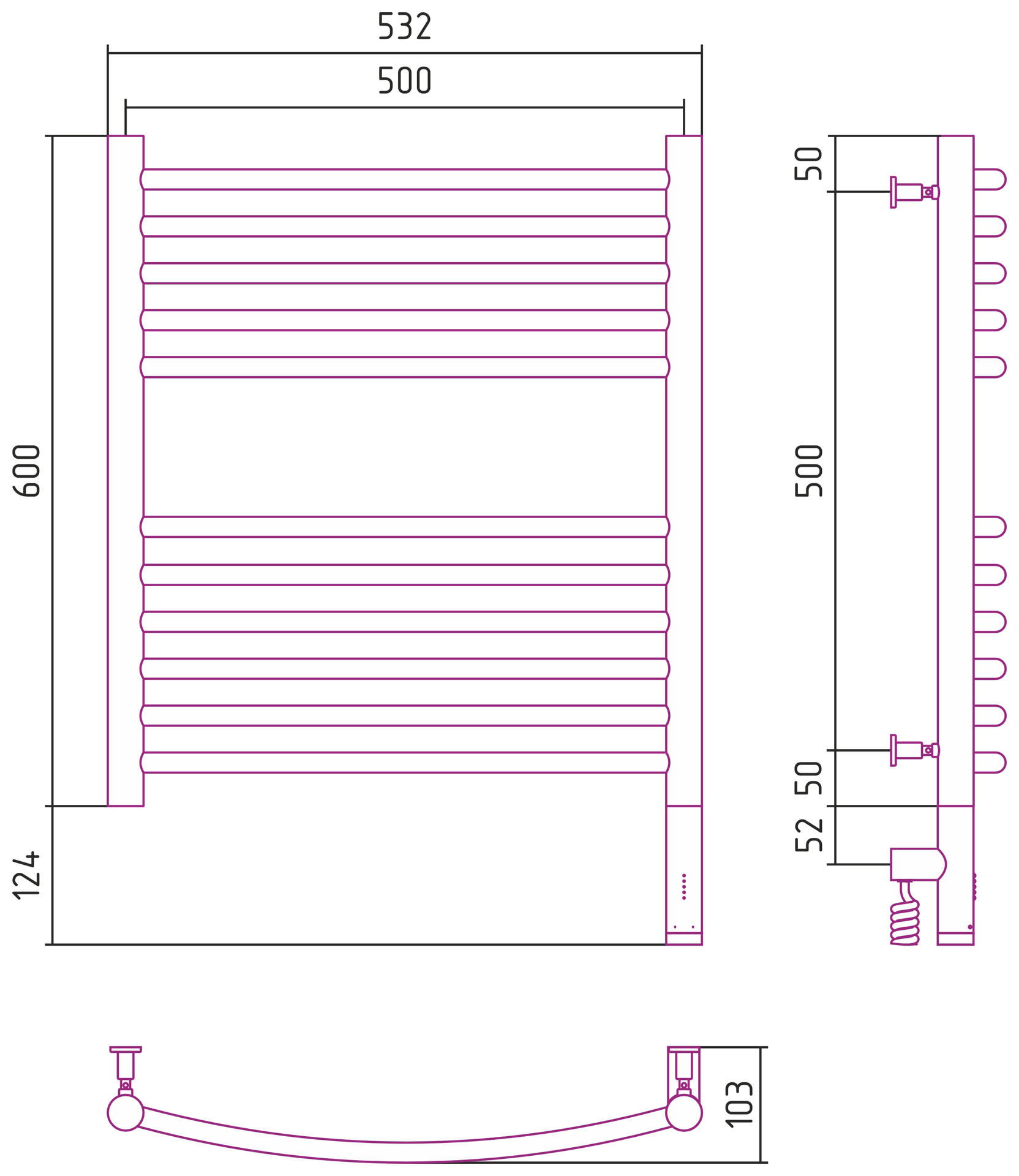 Сунержа Богема 3.0 выгнутая Электрический полотенцесушитель 600х500 Сатин