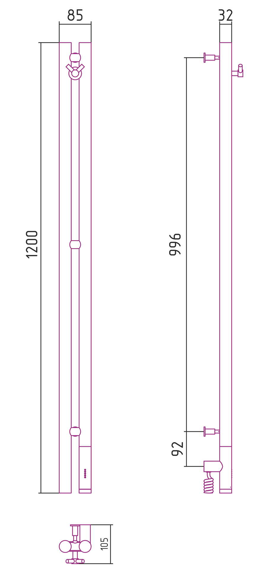 Комплектация: Блок управления с кабелем, Интегрированное в корпус скрытое подключение, Вешалка «Виктория», Телескопические кронштейны, Шестигранный ключ, Дюбели и саморезы