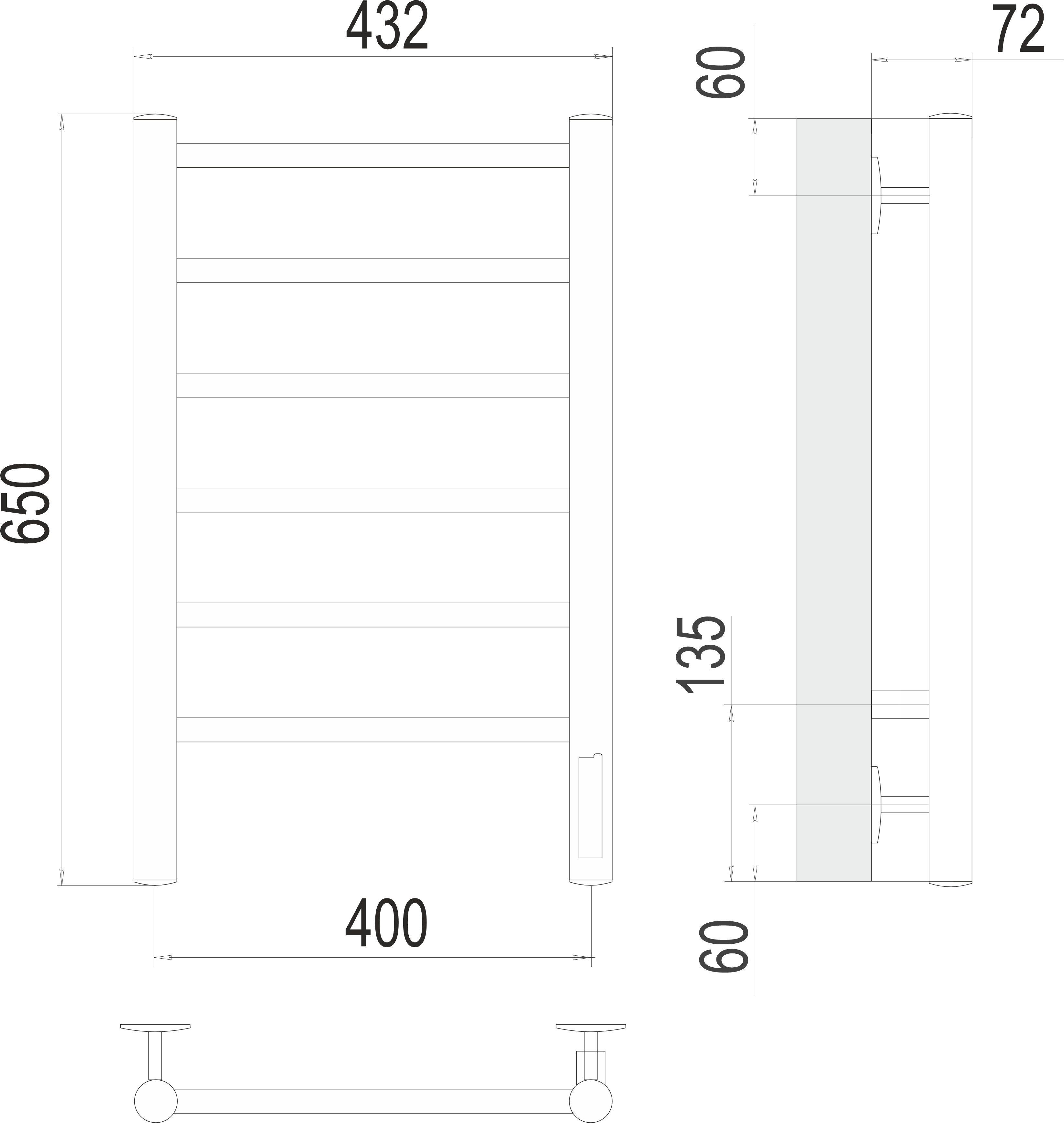 Terminus Аврора П6 Электрический полотенцесушитель 650х400 4670078531148 Нержавеющая сталь