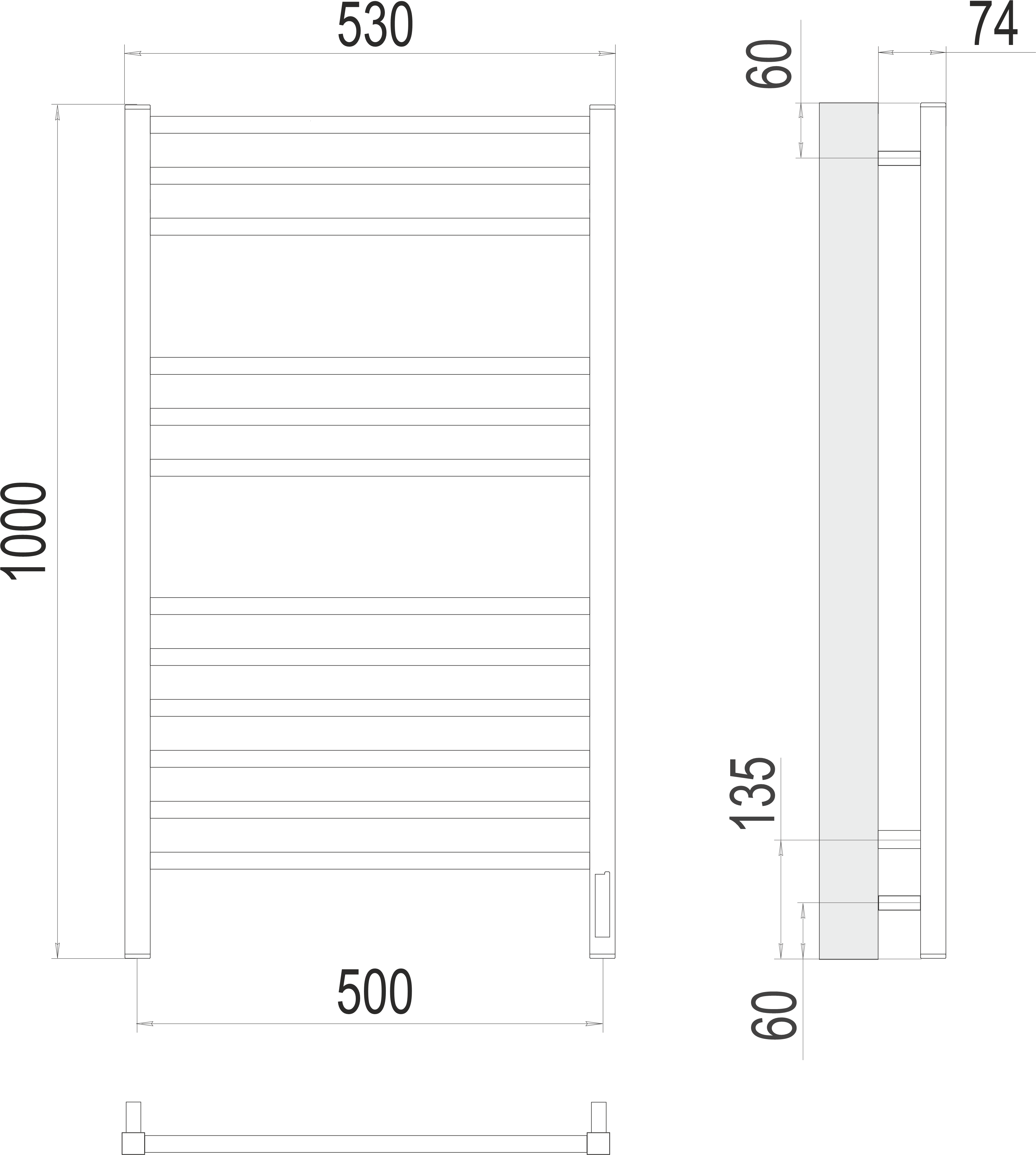 Terminus Ватикан П12 Электрический полотенцесушитель 1000х500 4670078526205 Матовый черный