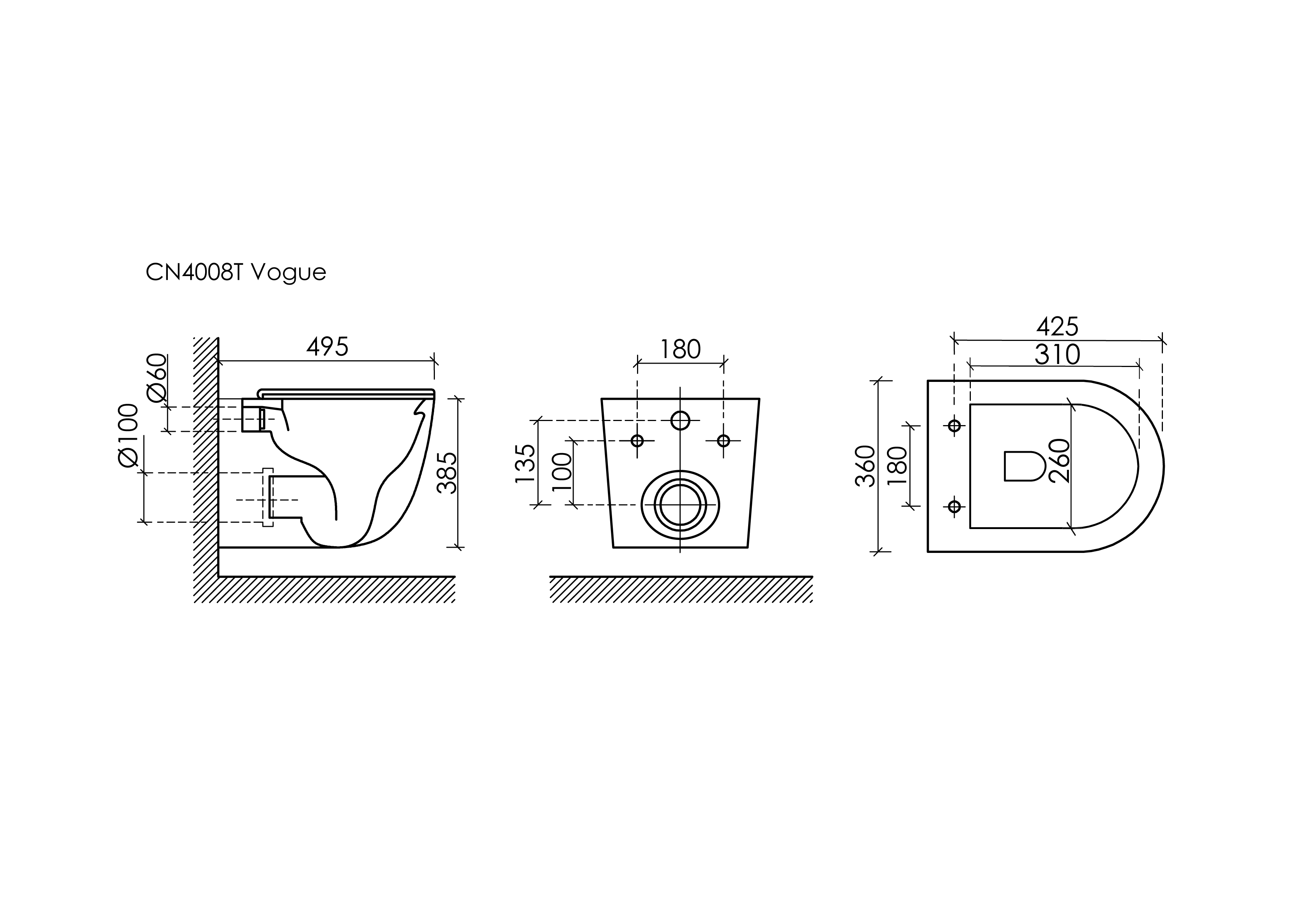 Ceramicanova Vogue Подвесной унитаз, безободковый, смыв торнадо CN4008T Белый