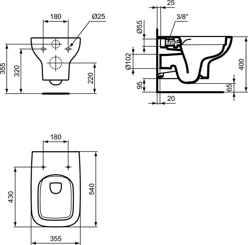 Ideal Standard i.life A Безободковый подвесной унитаз с функцией биде, технология RimLS+, глубокий смыв. Сиденье и крышка T453001 или T453101 или T481201 или T481301 заказывается дополнительно. Без крепежа.