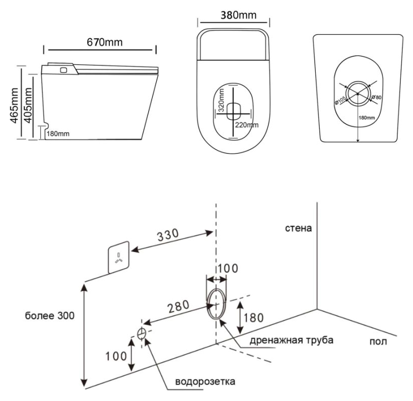 Форма воронки унитаза предотвращает образование брызг