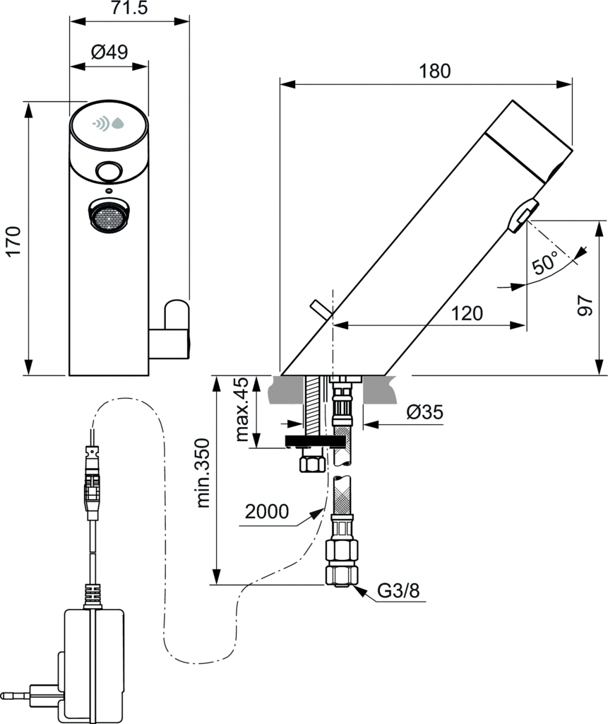 Ideal Standard SENSORFLOW Электронный смеситель для умывальника (со смешиванием), работа от сети A7558AA